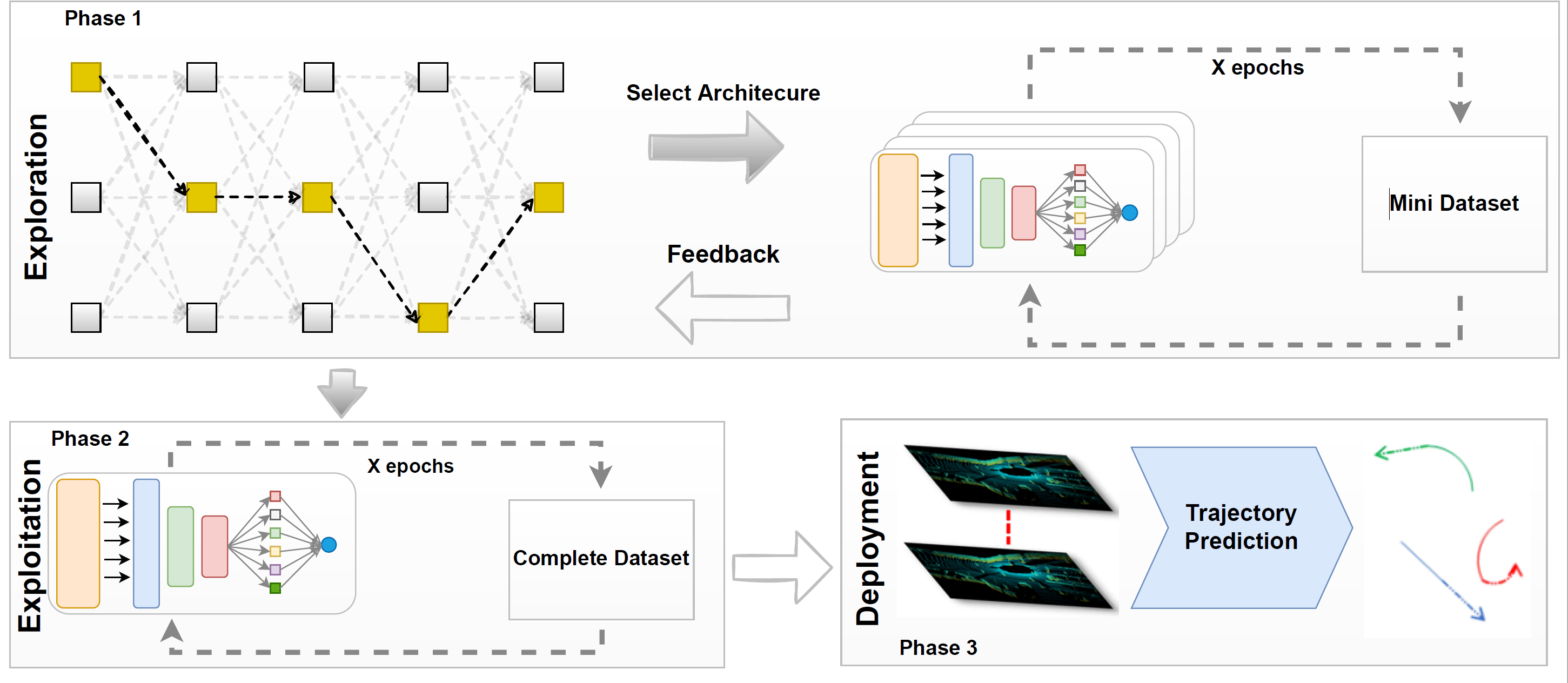 This paper, TrajectoryNAS, uses Neural Architecture Search (NAS) to improve future trajectory prediction for autonomous systems, especially in autonomous driving (AD). Accurate predictions are vital for safety and efficiency. The study highlights how enhanced trajectory forecasting can improve Simultaneous Localization and Mapping (SLAM). It explores using 2D and 3D data, noting cameras’ strengths in classification, radar’s robust distance/velocity measurements, and LIDAR’s superior accuracy. The paper also examines various 3D data representations to optimize predictions.