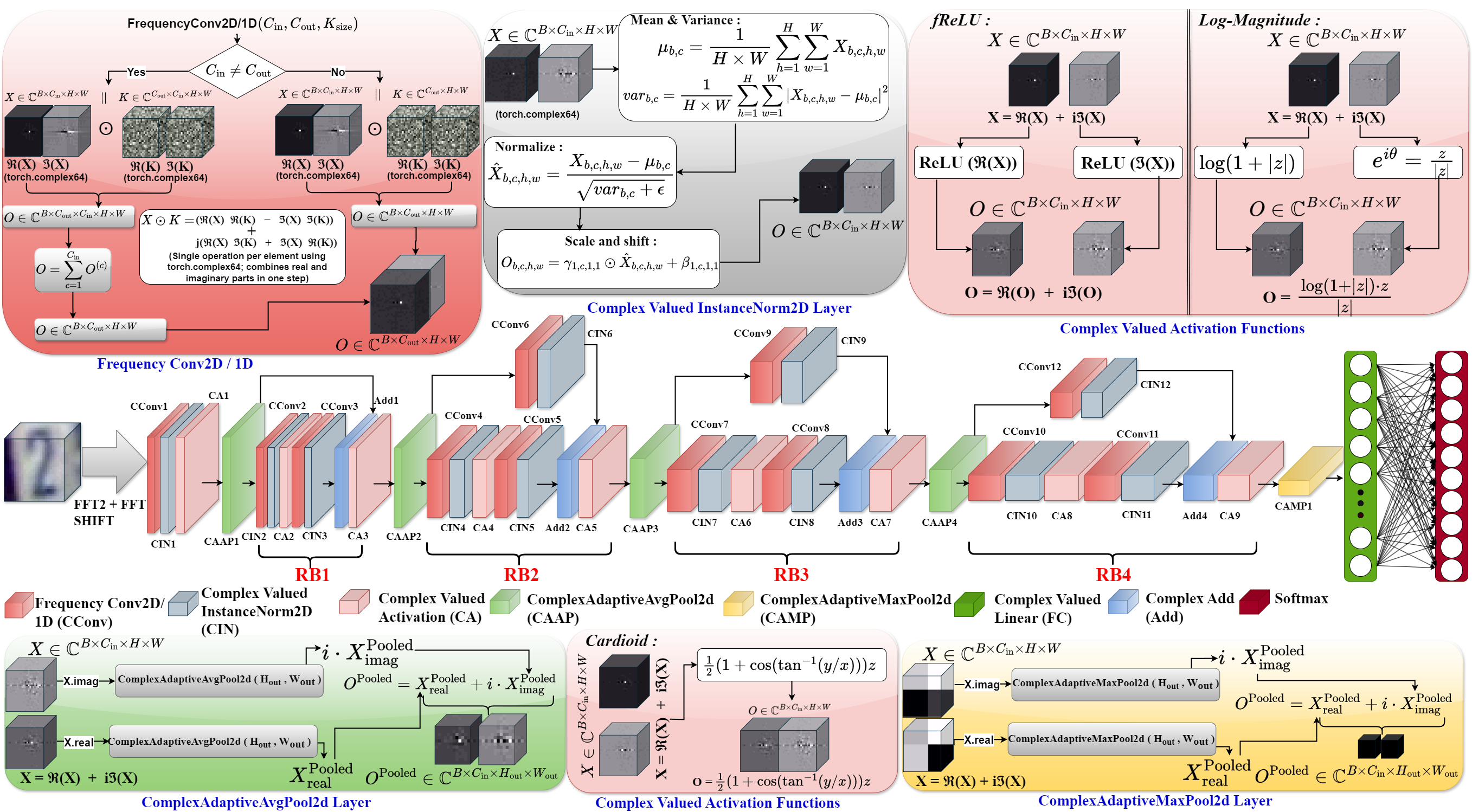 This paper presents a fully complex-valued residual CNN that operates entirely in the frequency domain to efficiently process complex data. Traditional real-valued CNNs lose important phase information and are computationally intensive, while prior complex-valued models depend heavily on FFT/IFFT transformations and incomplete complex formulations. To address these issues, the authors design lightweight, fully complex building blocks—including complex convolution, normalization, pooling, and a new Log-Magnitude activation function that preserves phase and stabilizes gradient flow. This model significantly reduces computational complexity while maintaining expressive power. Evaluated across multiple datasets (MNIST, SVHN, MIT-BIH Arrhythmia, PTB Diagnostic ECG, DIAT-μRadHAR, and DIAT-μSAT), the proposed approach outperforms both real-valued and existing hybrid complex-valued CNNs in accuracy, efficiency, and generalization, demonstrating the potential of frequency-domain complex-valued deep learning for diverse real-world applications.